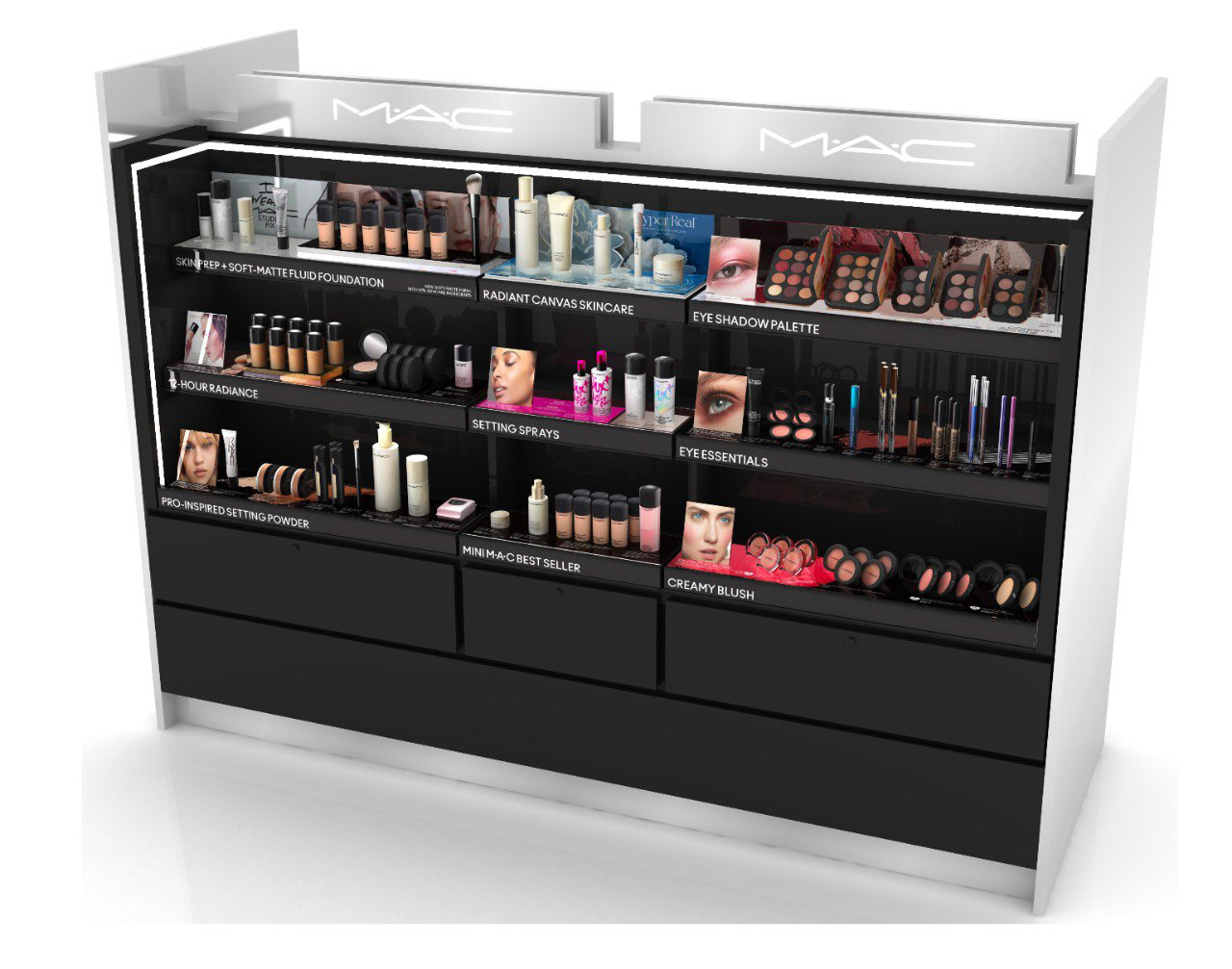 Planogram designs applied to an in-store fixture that were used in Brand Beauty Centre (BBC) Beachwalk Bali and Thailand's EVEANDBOY (Imperial World Samrong and Gaysorn Village).